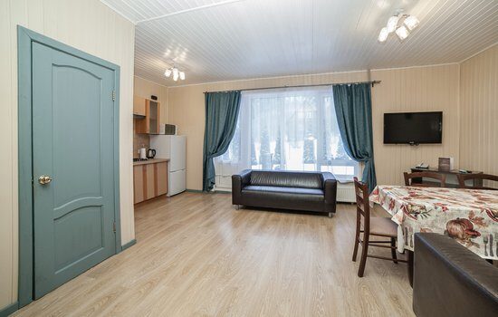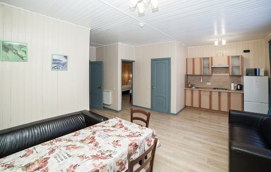 В каждом коттедже есть кухонная зона для приготовления пищи с газовой плитой, финская сауна, мангальные зоны для барбекю, телевизор, холодильник.